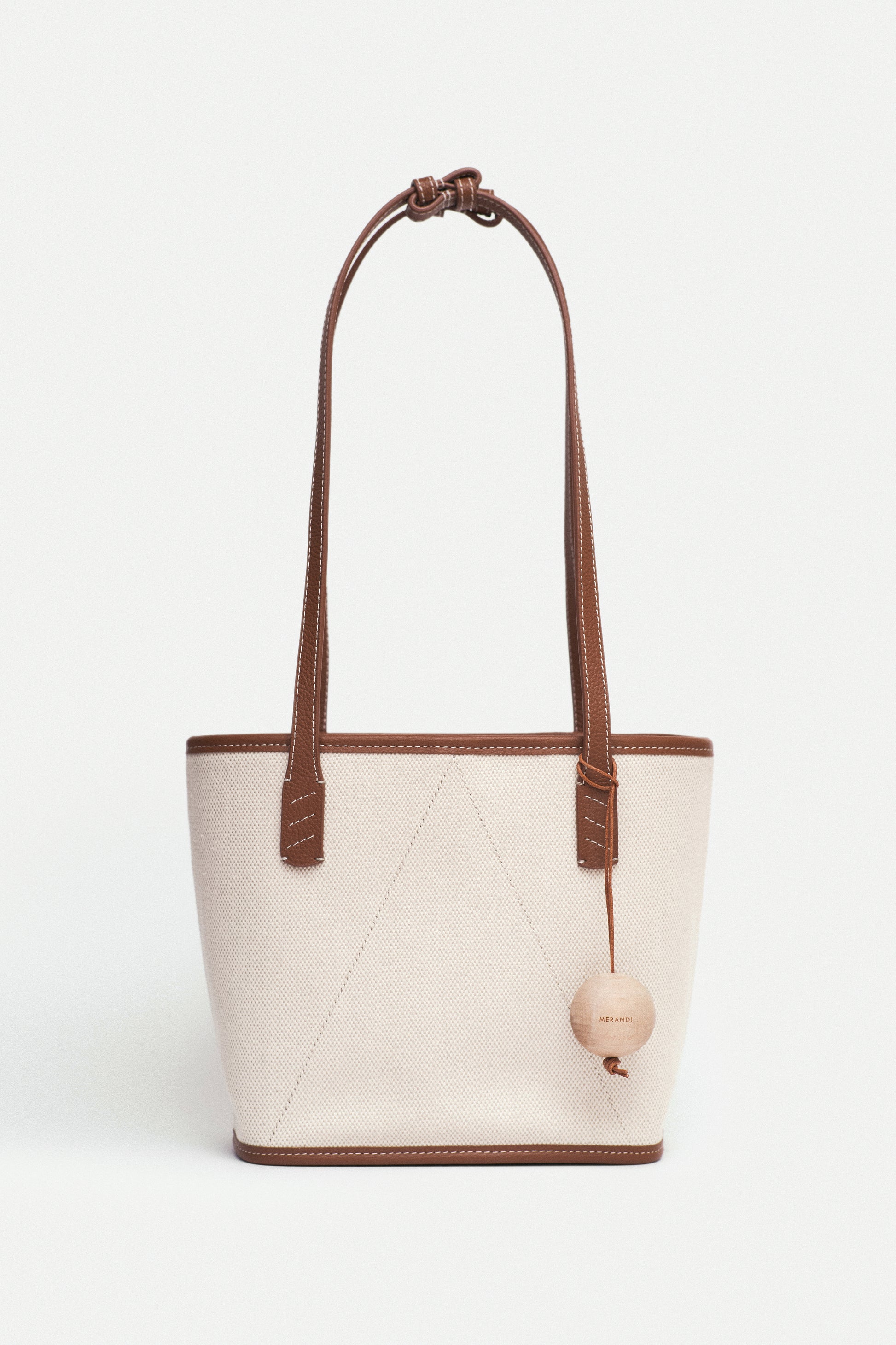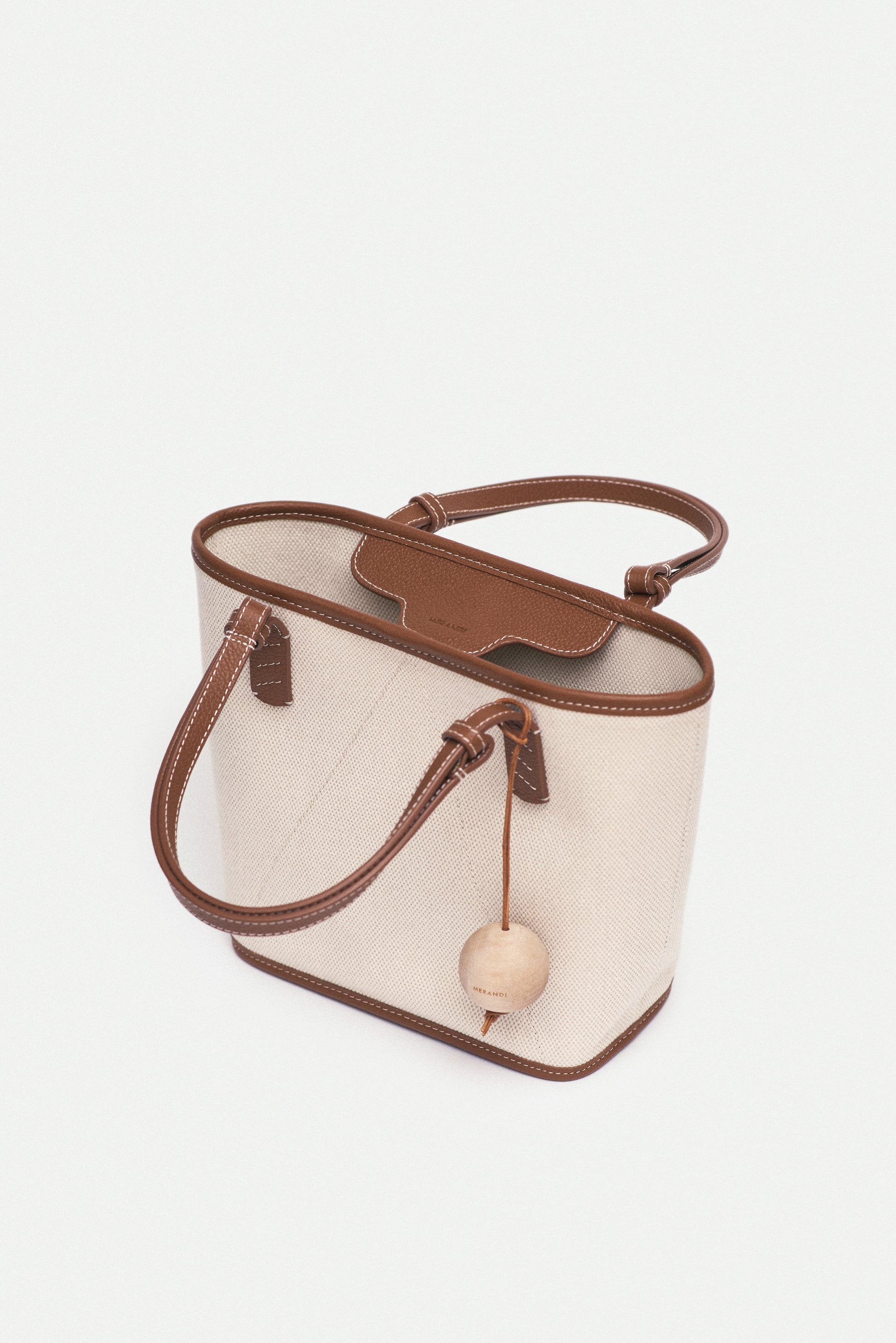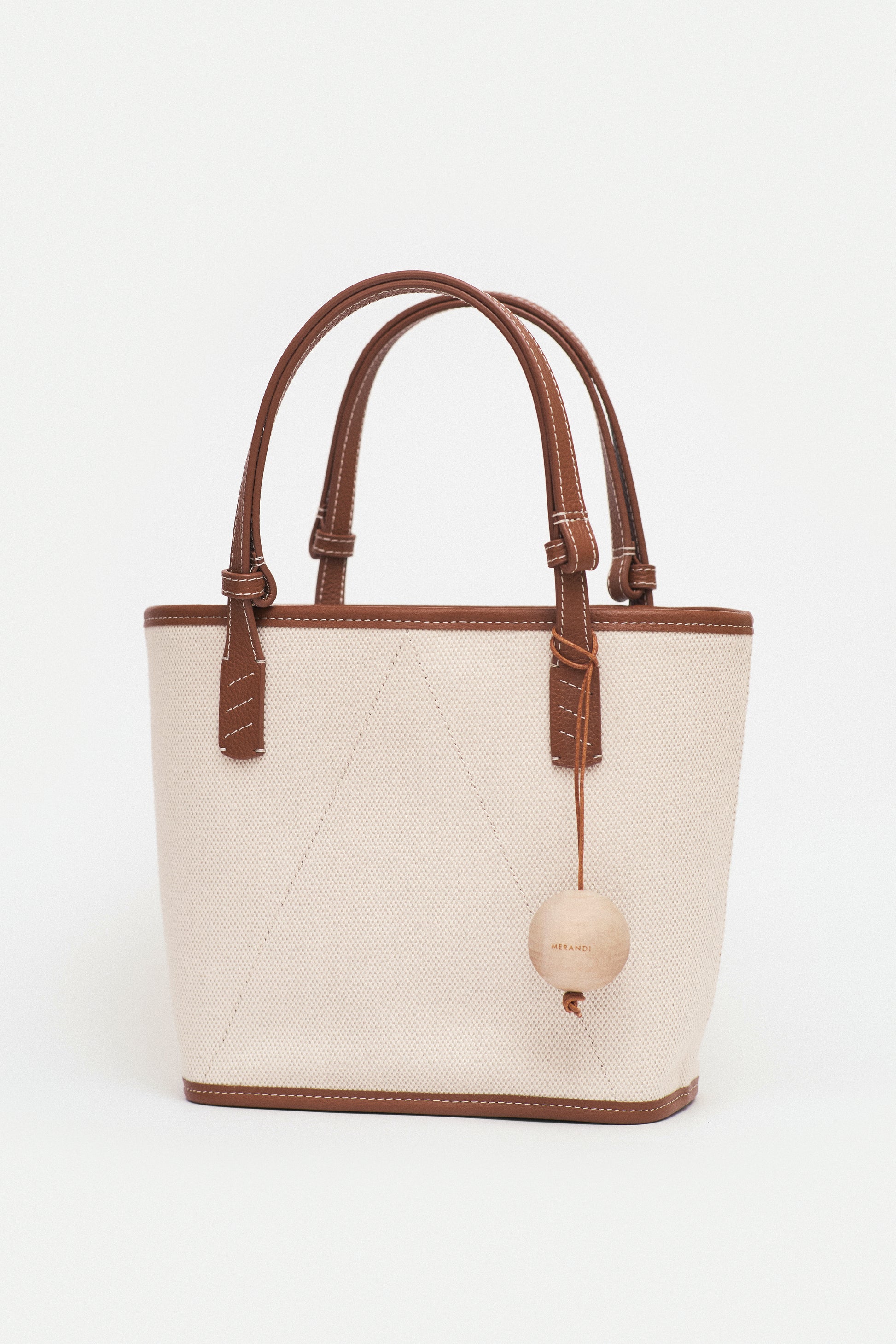 Crafted for a life in motion, the 30 Canvas Bag brings together effortless elegance and modern utility. MERANDI’s hidden signature V-stitch, a birch wooden ball charm on cowhide leather cords, and adjustable straps that adapt with ease.